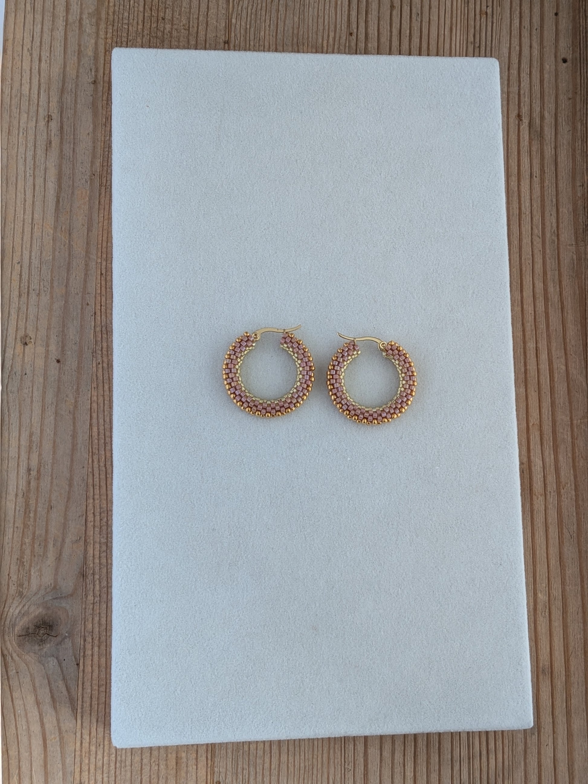 Disse unikke cirkulære øreringe er håndlavet med smukke Miyuki-perler, som er omhyggeligt vævet i spejlede mønstre. Med en harmonisk blanding af varme og kølige toner tilføjer de et strejf af elegance til ethvert outfit. Perfekt til dig, der ønsker at skille dig ud med eksklusiv stil og tidløs skønhed. Se en kort video i billedgalleriet, hvor du kan se “Valentina”-creolerne i bevægelse. Videoen viser deres runde form og elegante udtryk, samt hvordan de fanger lyset og fremhæver de håndsyede detaljer.